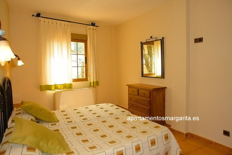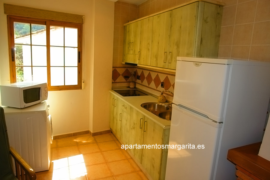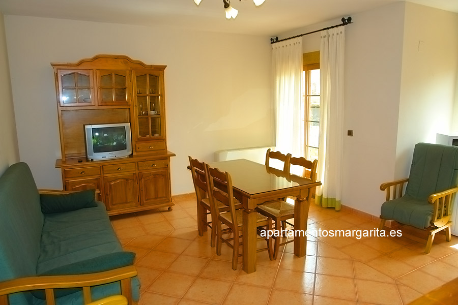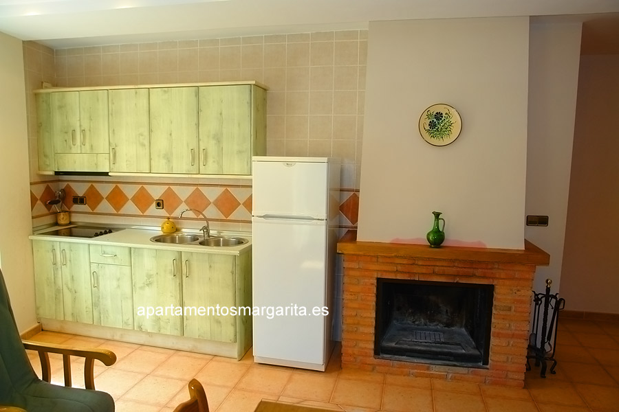 Apartamento Encina con chimenea de leña, salón con cocina, baño completo y un dormitorio de matrimonio. El salón dispone de chimenea, mesa, sillas, sofá cama y televisión. La cocina dispone de menaje completo, lavadora, frigorífico y microondas. Sábanas, mantas y toallas. Wifi gratis.