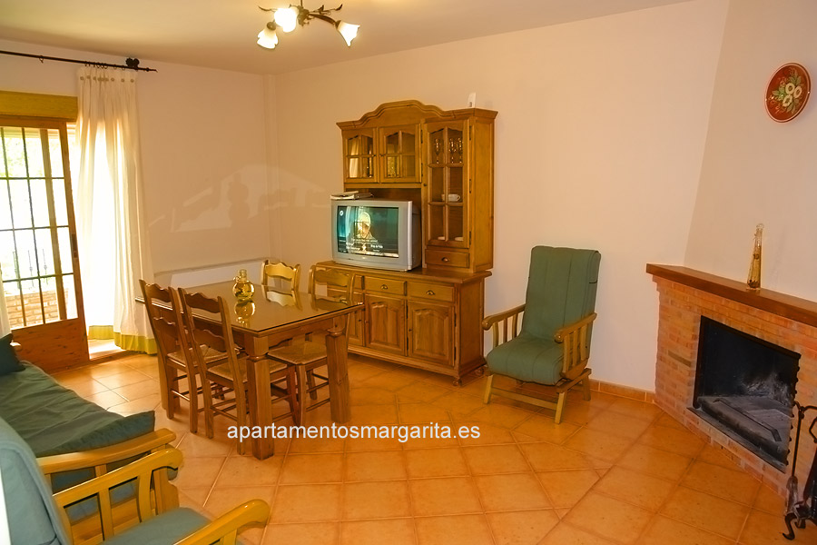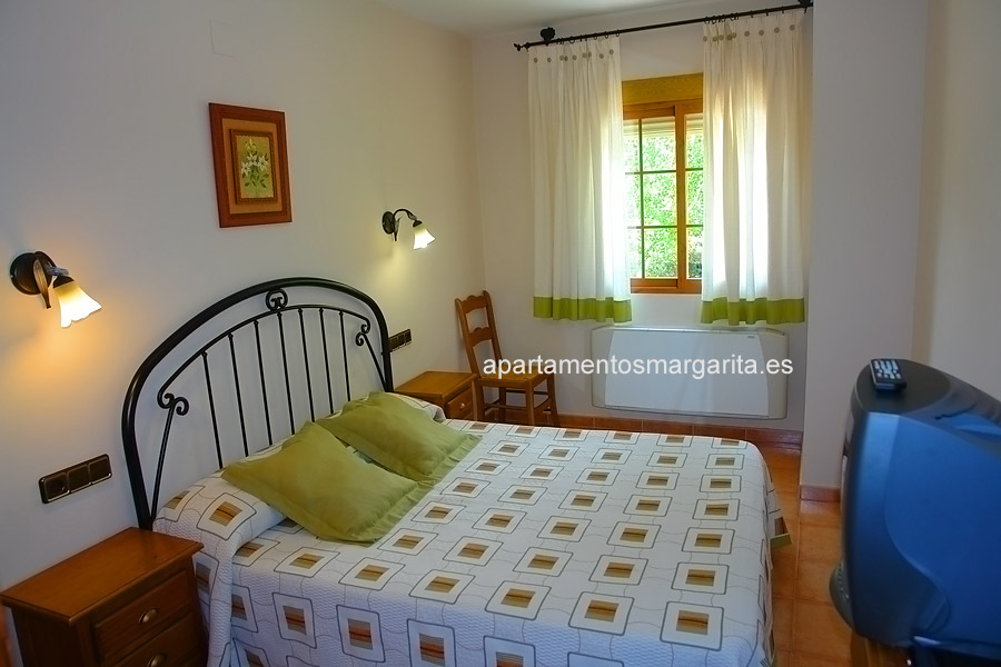 Apartamento Viola con salón y chimenea de leña, cocina, baño completo y un dormitorio de matrimonio. El salón dispone de mesa, sillas, chimenea, sofá cama y televisión. La cocina dispone de menaje completo, lavadora, frigorífico y microondas. Sábanas, mantas y toallas. Wifi gratis.